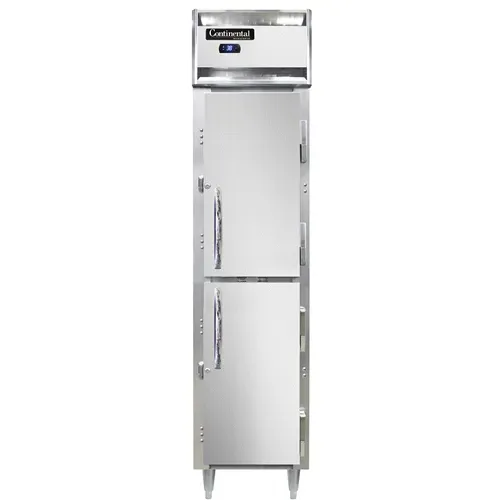 Unleash your inner chef with the Continental Refrigerator D1RSESNSAHD Reach-In Refrigerator. This designer slim line refrigerator is perfect for commercial restaurant use, offering a narrow half-height solid door and a shallow depth cabinet. The stainless steel exterior and aluminum interior not only provide durability but also give a sleek and professional look to your kitchen. With self-contained refrigeration and electronic control with a digital display, you can easily monitor and adjust the temperature to keep your ingredients fresh. The hi-low alarm ensures that you are alerted if the temperature goes outside the desired range, allowing you to take immediate action. The 6" stainless steel legs provide stability and make it easy to clean underneath the refrigerator. Made in the USA and certified by cETLus and NSF, this Continental Refrigerator is a reliable and high-quality choice for any commercial kitchen.