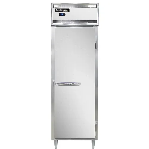 Cooking at its finest begins with the Continental Refrigerator D1RSNSA* Reach-In Refrigerator. This designer line refrigerator is perfect for commercial restaurant use, offering a sleek stainless steel exterior and an aluminum interior for durability and easy cleaning. The shallow depth cabinet allows for efficient use of space, while the full-height solid door ensures optimal insulation and temperature control. With electronic control and a digital display, you can easily monitor and adjust the refrigerator settings. The hi-low alarm alerts you if the temperature goes outside the desired range, ensuring the safety of your food. The 6" stainless steel legs provide stability and make it easy to clean underneath the refrigerator. Made in the USA and certified by cETLus and NSF, this Continental Refrigerator is a reliable and high-quality choice for any commercial kitchen.