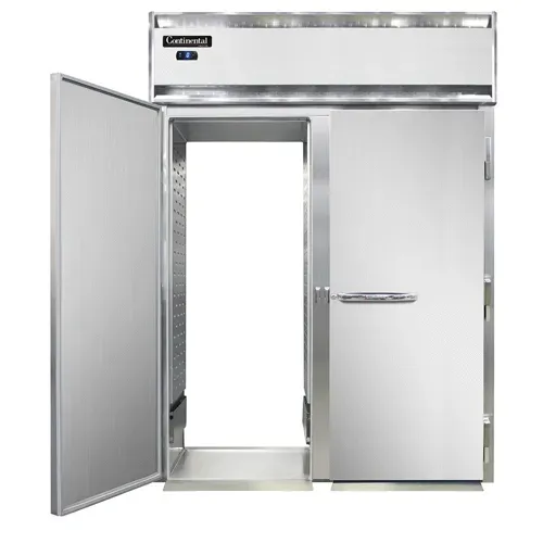 Cook with confidence with the Continental Refrigerator D2FINRT Freezer. This designer line freezer is perfect for commercial restaurant use. With its roll-thru design and two-section layout, it offers convenient access and ample storage space. The self-contained refrigeration system ensures optimal cooling performance, while the stainless steel front and aluminum interior provide durability and easy cleaning. The full-height solid doors not only enhance the unit's sleek appearance but also help maintain consistent temperatures. The electronic control with a digital display allows for precise temperature management, and the hi-low alarm alerts you to any fluctuations. The removable stainless steel ramps make loading and unloading a breeze. Powered by a 1 HP motor, this freezer delivers reliable performance. Trust Continental Refrigerator, a trusted name in the industry, and invest in the D2FINRT Freezer for your commercial kitchen.