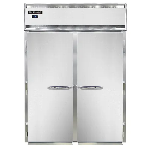 Empower your kitchen staff with the Continental Refrigerator D2FINSS Freezer, Roll-In. This designer line freezer is perfect for commercial restaurant use, offering a spacious and efficient storage solution. With its two-section design and full-height solid doors, this freezer provides ample space for storing a large quantity of food items. The stainless steel exterior and interior not only give it a sleek and professional look but also make it durable and easy to clean. The self-contained refrigeration system ensures optimal temperature control, while the electronic control with a digital display allows for easy monitoring and adjustment. The hi-low alarm alerts your staff if the temperature goes outside the desired range, ensuring the safety of your food. The removable stainless steel ramps make it convenient to roll in and out heavy food carts. With a powerful 1 HP motor, this freezer is built to handle the demands of a busy commercial kitchen. Upgrade your restaurant's storage capabilities with the Continental Refrigerator D2FINSS Freezer, Roll-In.