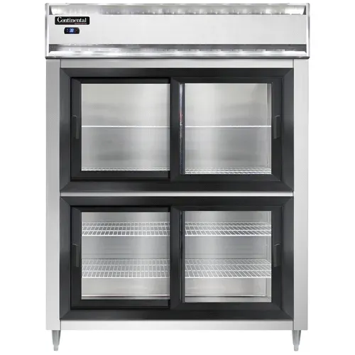 Cooking at its finest begins with the Continental Refrigerator D2RENSASGD-HD Reach-In Refrigerator. This designer line wide refrigerator is a must-have for any commercial restaurant. With its spacious two-section layout and wide half-height sliding glass doors, you can easily access and display your culinary creations. The self-contained refrigeration system ensures optimal temperature control, while the stainless steel exterior and aluminum interior provide durability and easy cleaning. The electronic control with a digital display allows for precise adjustments, and the hi-low alarm ensures food safety. The 6" stainless steel legs provide stability and make cleaning underneath a breeze. With a 1/2 HP motor, this refrigerator is powerful enough to handle the demands of a busy kitchen. Certified by cETLus and NSF, you can trust in the quality and reliability of this Continental Refrigerator. Upgrade your restaurant's refrigeration capabilities with the Continental Refrigerator D2RENSASGD-HD Reach-In Refrigerator.