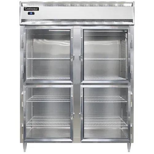 Maximize your food service potential with the Continental Refrigerator D2RENSSSGDHD Reach-In Refrigerator. This designer line wide refrigerator is perfect for commercial restaurant use, offering a spacious 57"W two-section cabinet with wide half-height sliding glass doors. The stainless steel exterior and interior not only provide durability but also give a sleek and professional look to your kitchen. With self-contained refrigeration and electronic control featuring a digital display, you can easily monitor and adjust the temperature to keep your ingredients fresh and safe. The hi-low alarm ensures that you are promptly alerted to any temperature fluctuations. The 6" stainless steel legs provide stability and make cleaning underneath a breeze. With a 1/2 HP compressor, this refrigerator is powerful enough to meet the demands of a busy restaurant kitchen. Trust Continental Refrigerator for reliable and efficient refrigeration solutions.