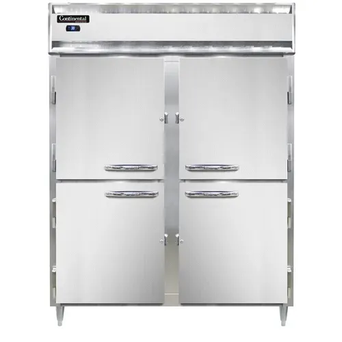 Create culinary magic with the Continental Refrigerator D2RESNHD Reach-In Refrigerator. This wide, two-section refrigerator is part of the designer line, offering both functionality and style for your commercial restaurant. With a shallow depth cabinet and wide half-height stainless steel doors, this refrigerator is perfect for busy kitchens where space is at a premium. The self-contained refrigeration system ensures optimal temperature control, while the electronic control with digital display allows for easy monitoring and adjustment. The hi-low alarm alerts you if the temperature goes outside the desired range, ensuring the safety of your perishable ingredients. Made in the USA with an aluminum exterior and interior, as well as a stainless steel front, this refrigerator is built to withstand the demands of a busy restaurant kitchen. Complete with 6" stainless steel legs and a 1/3 HP compressor, this Continental Refrigerator is both durable and efficient. Trust in Continental Refrigerator for all your commercial refrigeration needs.