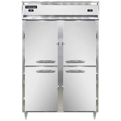 Maximize your food service potential with the Continental Refrigerator D2RFSNHD Reach-In Refrigerator Freezer. This designer line refrigerator/freezer is perfect for commercial restaurant use, offering a spacious and efficient storage solution. With its two-section design and shallow depth cabinet, it provides ample space for storing a variety of food items while saving valuable floor space. The narrow half-height solid doors allow for easy access and visibility of the contents inside. The aluminum exterior and interior, along with the stainless steel front and doors, ensure durability and easy cleaning. Equipped with dual 1/4 & 1/3 HP compressors and electronic control with a digital display, this refrigerator freezer offers precise temperature control and energy efficiency. The hi-low alarm feature alerts you to any temperature fluctuations, ensuring the freshness and safety of your food. Made in the USA and certified by cETLus and NSF, you can trust the quality and reliability of this Continental Refrigerator. Upgrade your restaurant's refrigeration system with the D2RFSNHD Reach-In Refrigerator Freezer.