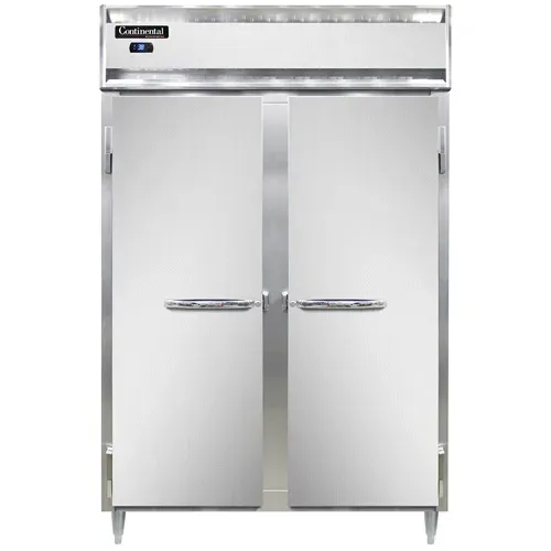 Elevate your culinary experience with the Continental Refrigerator D2RN Reach-In Refrigerator. This designer line refrigerator is perfect for commercial restaurant use, offering a spacious two-section layout and self-contained refrigeration for optimal food storage. The aluminum exterior and interior, along with the stainless steel front, ensure durability and easy cleaning. The full-height stainless steel doors not only add a touch of elegance but also provide easy access to your ingredients. With electronic control and a digital display, you can easily monitor and adjust the temperature to keep your food fresh. The hi-low alarm alerts you if the temperature goes outside the desired range, ensuring food safety. The 6" stainless steel legs provide stability and make cleaning underneath a breeze. With a 1/3 HP compressor, this refrigerator is powerful enough to handle the demands of a busy commercial kitchen. Trust in the quality of Continental Refrigerator, a brand known for its reliability and made in the USA. Upgrade your restaurant's refrigeration system with the Continental Refrigerator D2RN Reach-In Refrigerator.
