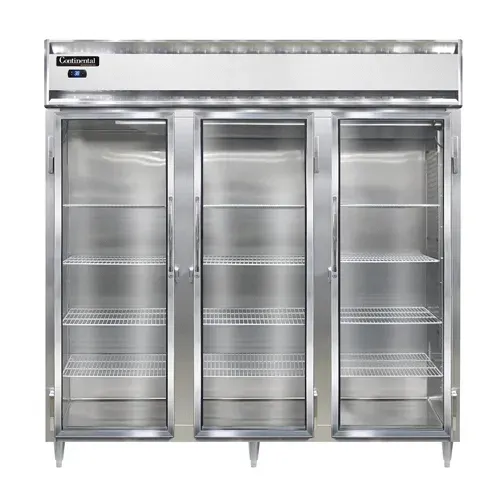 Cooking at its finest begins with the Continental Refrigerator D3RNSSGD Reach-In Refrigerator. This designer line refrigerator is a must-have for any commercial restaurant. With its sleek stainless steel exterior and interior, it not only looks professional but is also easy to clean and maintain. The full-height glass doors provide a clear view of the contents, making it convenient to locate items without opening the doors and letting the cold air escape. The electronic control with a digital display allows for precise temperature adjustments, ensuring that your ingredients stay fresh and at the optimal temperature. The hi-low alarm alerts you if the temperature goes above or below the set range, preventing any spoilage. Equipped with a powerful 1 HP self-contained refrigeration system, this reach-in refrigerator is capable of handling the demands of a busy kitchen. The 6" stainless steel legs provide stability and make it easy to clean underneath. Trust Continental Refrigerator for reliable and efficient refrigeration solutions in your commercial kitchen.