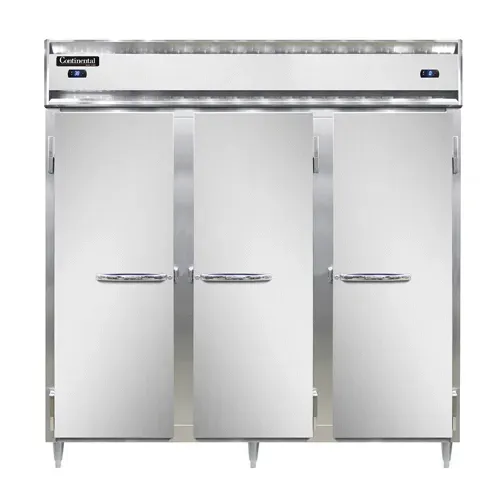 Elevate your cuisine with the Continental Refrigerator D3RRFNSAPT, a top-of-the-line pass-thru refrigerator freezer designed for commercial restaurant use. This designer line refrigerator/freezer features a sleek stainless steel exterior and an aluminum interior, ensuring durability and easy cleaning. With its standard depth cabinet and narrow full-height solid doors, this unit maximizes storage space while maintaining a compact footprint. The electronic control with a digital display allows for precise temperature management, while the hi-low alarm ensures food safety. The D3RRFNSAPT is equipped with dual 1/3 & 1/3 HP compressors, providing efficient and reliable cooling for both the refrigerator and freezer sections. Whether you need to store fresh ingredients or frozen goods, this pass-thru refrigerator freezer from Continental Refrigerator is the perfect solution for any commercial kitchen. Trust in Continental Refrigerator's expertise and invest in a product that will enhance your restaurant's efficiency and productivity.