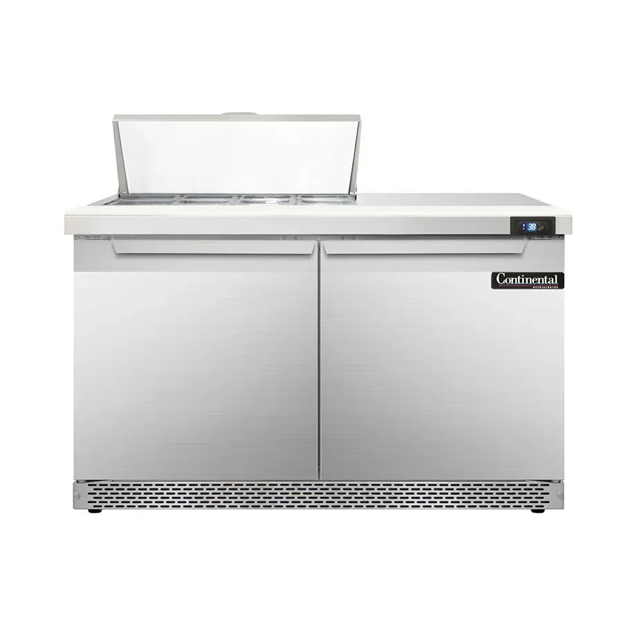 Culinary excellence in every dish starts with the Continental Refrigerator D48N8-FB Refrigerated Counter, Sandwich / Salad Unit. This designer line sandwich unit is a must-have for any commercial restaurant looking to elevate their food preparation and storage capabilities. With its two-section design and eight 1/6 size x 4" deep pans, you'll have plenty of space to store and organize your ingredients. The unit also features a 12" cutting board, allowing for seamless meal preparation. The stainless steel top, front, sides, and interior not only provide durability but also give the unit a sleek and professional look. The electronic control with a digital display and hi-low alarm ensures precise temperature control and food safety. With rear-mounted self-contained refrigeration and 3-3/4" casters, this unit is easy to move and position in your kitchen. Trust in the Continental Refrigerator D48N8-FB to deliver exceptional performance and reliability, making it the perfect addition to any commercial restaurant.