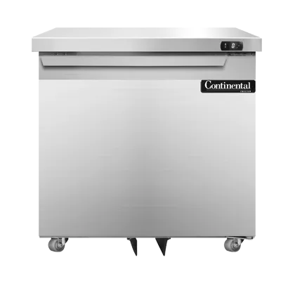 Discover kitchen perfection with the Continental Refrigerator DF32N-U Freezer. This undercounter reach-in freezer is a must-have for any commercial restaurant. With its sleek stainless steel exterior and interior, it not only adds a touch of elegance to your kitchen but also ensures durability and easy cleaning. The one-section design and field rehingeable door provide convenient access to your frozen goods. The front breathing feature allows for easy installation, while the rear mounted self-contained refrigeration system ensures efficient cooling. The electronic control with a digital display and hi-low alarm allows for precise temperature management, ensuring your food stays fresh and safe. Equipped with a 1/3 HP compressor, this freezer delivers powerful performance. Made in the USA and certified by cETLus and NSF, you can trust the quality and reliability of this Continental Refrigerator freezer. Upgrade your kitchen with the DF32N-U and experience the perfect blend of functionality and style.