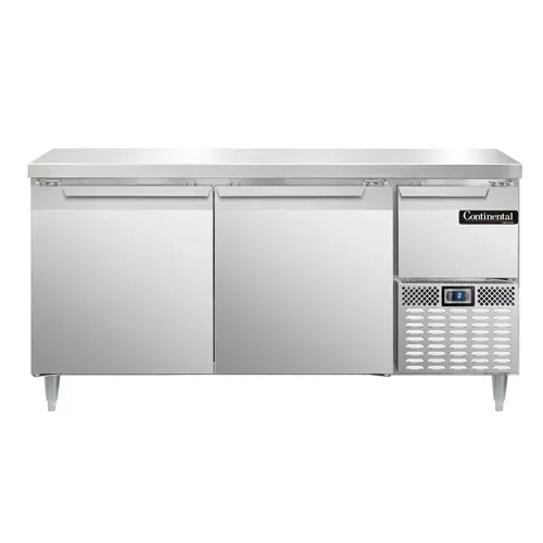 Culinary excellence in every dish starts with the Continental Refrigerator DFA68NSS Freezer Counter. This designer line worktop unit is a must-have for any commercial restaurant looking to elevate their kitchen operations. With a spacious 68" width, this freezer counter provides ample storage space for all your frozen ingredients and prepared dishes. The reinforced stainless steel worktop is not only durable but also easy to clean, ensuring a hygienic food preparation area. The stainless steel exterior, front, sides, and interior add a touch of sophistication to your kitchen while also offering excellent durability. The unit features two full-height and one half-height field rehingeable doors, allowing for easy access to your frozen goods. The electronic control with a digital display and hi-low alarm ensures precise temperature management, keeping your ingredients at their optimal freshness. With its 6" adjustable stainless steel legs, this freezer counter can be easily positioned to fit your kitchen layout. Made in the USA and certified by cETLus and NSF, you can trust the quality and reliability of this Continental Refrigerator product. Upgrade your kitchen with the Continental Refrigerator DFA68NSS Freezer Counter and experience culinary excellence like never before.
