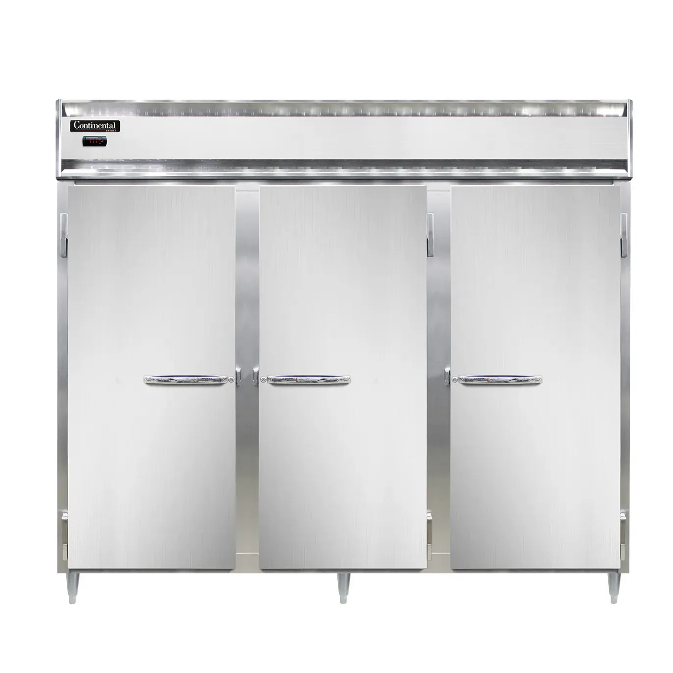 Culinary artistry redefined with the Continental Refrigerator DL3WE-SS Heated Cabinet, Reach-In. This designer line heated cabinet is perfect for commercial restaurant use, offering an extra wide reach-in design with three sections for ample storage space. The stainless steel exterior and interior not only provide durability but also give a sleek and professional look to any kitchen. With hinged doors, accessing your stored items is a breeze. The electronic control with a digital display allows for precise temperature management, ensuring your food stays at the perfect temperature for serving. Plus, the hi-low alarm feature alerts you if the temperature deviates from the set range, providing peace of mind. Whether you need to keep your dishes warm or hold prepared food for later service, the Continental Refrigerator DL3WE-SS Heated Cabinet, Reach-In is the ideal solution for your commercial kitchen.