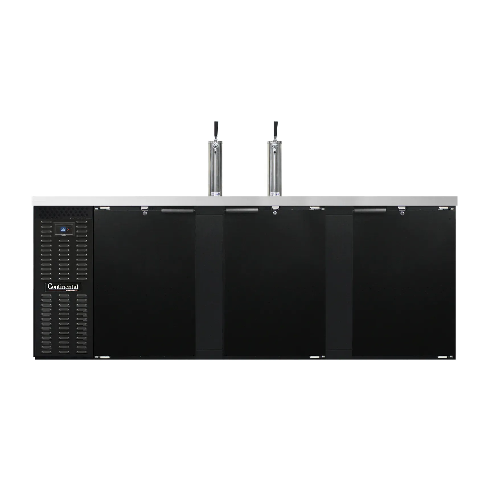 Culinary excellence in every dish begins with the Continental Refrigerator KC90SN Draft Beer Cooler. This top-of-the-line keg cooler is designed to meet the demands of a busy commercial restaurant. With a spacious 25.0 cu. ft. capacity, it can hold up to four barrels or straight wall kegs, ensuring you always have a variety of draft beers on tap for your customers to enjoy. The stainless steel top features two columns and a drainer, providing a convenient space for pouring and serving. The electronic controller with a digital display and hi-low alarm allows for precise temperature control, ensuring your beer is always served at the perfect temperature. The black enamel finish exterior adds a sleek and professional look to your establishment, while the galvanized interior with a reinforced stainless steel floor ensures durability and easy cleaning. Made in the USA and certified by cETLus and NSF, this Continental Refrigerator KC90SN Draft Beer Cooler is a reliable and high-quality addition to any commercial kitchen.