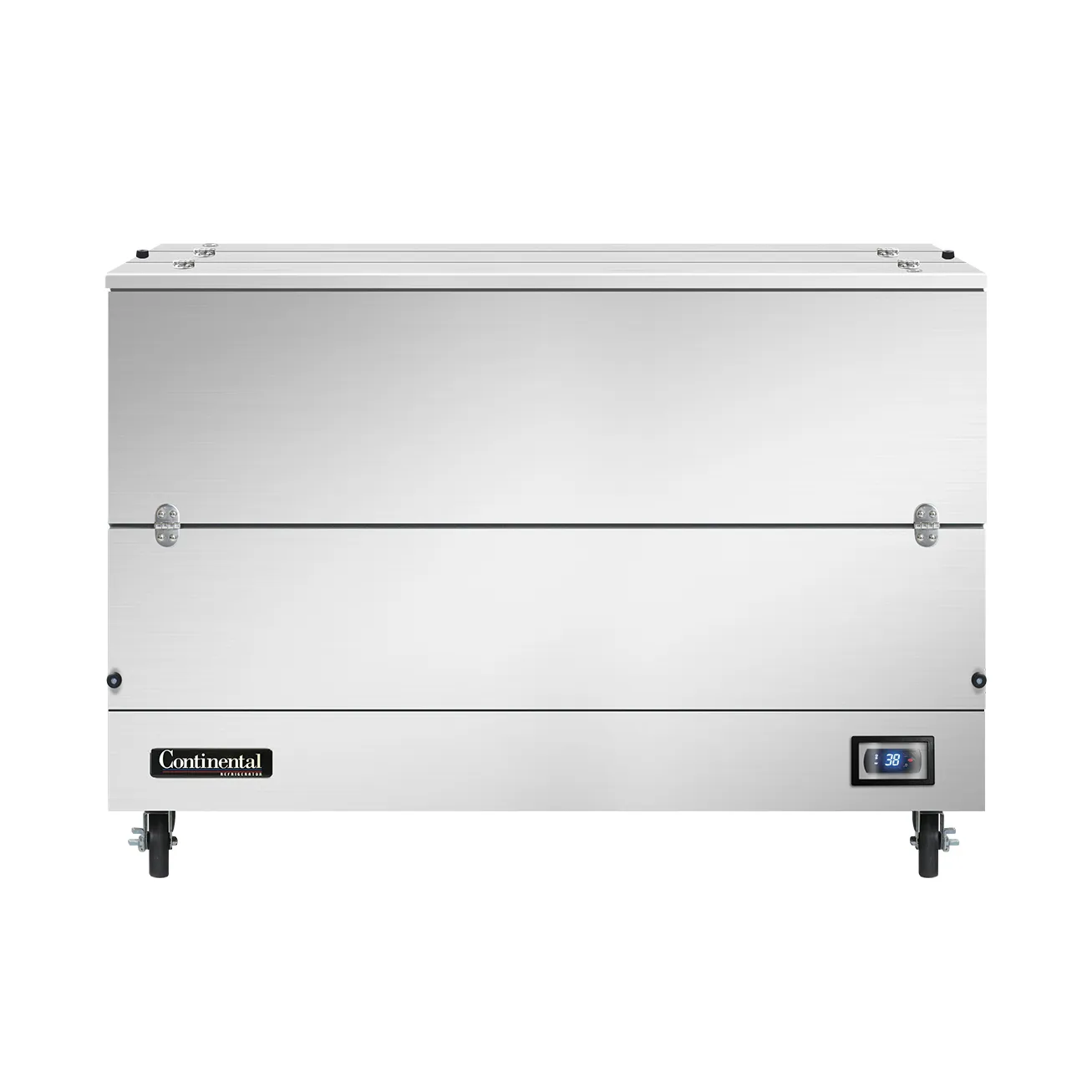 Elevate your dining experience with the Continental Refrigerator MC5NSSDCW Milk Cooler / Station. This top-of-the-line milk cooler is designed to meet the needs of commercial restaurants, ensuring that your milk stays fresh and easily accessible. With a capacity to hold either (16) 13" x 13" x 11" crates or (10) 19" x 13" x 11" crates, this cooler provides ample space for your milk storage needs. The dual access feature allows for convenient loading and unloading, while the door cylinder security locks ensure the safety and integrity of your milk supply. The electronic control with digital display allows for precise temperature control, and the hi-low alarm and hi/low temperature alarm provide added peace of mind. Made in the USA with a stainless steel interior and exterior, this milk cooler is not only durable but also easy to clean. The floor drain and swivel casters with front locking brakes make maintenance and mobility a breeze. Trust Continental Refrigerator to deliver exceptional quality and performance for your commercial restaurant.