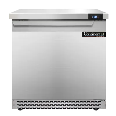 Unleash culinary creativity with the Continental Refrigerator SW32N-FB Refrigerated Counter. This work top refrigerator is designed to meet the demands of a busy commercial restaurant kitchen. With a 32" width and a 9.0 cu ft capacity, it provides ample space for storing ingredients and prepared dishes. The stainless steel flat top not only adds a sleek and professional look to your kitchen, but it also provides a durable and easy-to-clean surface. The field rehingeable door allows for flexibility in placement, while the electronic control with digital display ensures precise temperature management. The hi-low alarm alerts you if the temperature goes outside the desired range, helping to maintain food safety. With rear mounted self-contained refrigeration and 3-3/4" casters, this unit is easy to move and position. Made in the USA and certified by cETLus and NSF, you can trust the quality and reliability of this Continental Refrigerator. Upgrade your kitchen with the SW32N-FB Refrigerated Counter and experience the convenience and efficiency it brings to your culinary creations.