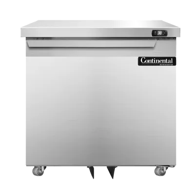 Introducing the Continental Refrigerator SW32N-U Undercounter Reach-In Refrigerator, designed to simplify restaurant operations. This one-section refrigerator offers a generous 9.0 cu ft capacity, providing ample storage space for your perishable ingredients. The field rehingeable door allows for easy customization to suit your kitchen layout, while the stainless steel front, top, and end panels ensure durability and a sleek appearance. Inside, the aluminum interior is easy to clean and maintain. The front breathing design and rear-mounted self-contained refrigeration system ensure efficient cooling performance. With an electronic control featuring a digital display and hi-low alarm, you can easily monitor and adjust the temperature to keep your ingredients fresh and safe. The SW32N-U is also environmentally friendly, utilizing R290 Hydrocarbon refrigerant. Made in the USA and cETLus certified, this undercounter refrigerator is a reliable and efficient addition to any commercial restaurant.