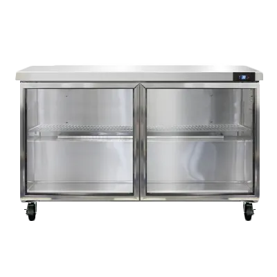 Unleash gastronomic brilliance with the Continental Refrigerator SW48NGD Refrigerated Counter. This work top display refrigerator is designed to meet the demands of a busy commercial restaurant. With a spacious 48"W and a generous 13.4 cu ft capacity, it provides ample storage space for your ingredients and prepared dishes. The two-section design and glass doors allow for easy organization and quick access to your items. The stainless steel flat top not only adds a sleek and professional look to your kitchen, but it also provides a durable and easy-to-clean surface. The LED interior lighting illuminates the contents, making it easy to find what you need. The electronic control with digital display allows for precise temperature management, while the hi-low alarm ensures that your food stays at the optimal temperature. Made in the USA and NSF certified, this work top refrigerator is a reliable and efficient addition to any commercial kitchen.