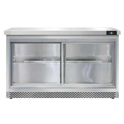 Create culinary magic with the Continental Refrigerator SW48NSGD-FB Refrigerated Counter. This work top display refrigerator is perfect for commercial restaurant use, offering a spacious 48"W and a generous 13.4 cu ft capacity. The two-section design features two sliding glass doors, allowing for easy access and visibility of your culinary creations. The LED interior lighting illuminates the contents, making it easy to showcase your dishes to customers. With stainless steel front and end panels, as well as an aluminum interior, this refrigerator is built to withstand the demands of a busy kitchen. The electronic control with digital display ensures precise temperature management, while the hi-low alarm alerts you to any fluctuations. The rear mounted self-contained refrigeration system, powered by R290 Hydrocarbon refrigerant and a 1/4 HP compressor, ensures efficient and reliable cooling. With its sleek design and practical features, the Continental Refrigerator SW48NSGD-FB is a must-have for any commercial restaurant.