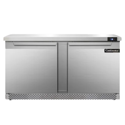 Elevate your culinary experience with the Continental Refrigerator SW60N-FB Refrigerated Counter. This work top refrigerator is designed to meet the demands of a commercial restaurant, providing both functionality and style. With a spacious 17.0 cu ft capacity and a stainless steel flat top, this two-section unit offers ample space for food preparation and storage. The two field rehingeable doors allow for easy access to the interior, which features aluminum panels for durability and easy cleaning. The electronic control with digital display ensures precise temperature management, while the hi-low alarm alerts you to any fluctuations. The rear mounted self-contained refrigeration system, powered by the eco-friendly R290 Hydrocarbon refrigerant and 1/4 HP compressor, ensures efficient cooling. With its sleek design, reliable performance, and NSF certification, the Continental Refrigerator SW60N-FB is the perfect addition to any commercial kitchen.