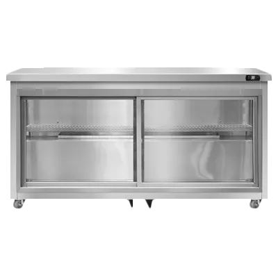 Elevate your culinary experience with the Continental Refrigerator SW60NSGD-U Undercounter Display Refrigerator. This two-section refrigerator is designed to meet the needs of commercial restaurants, offering a spacious 17.0 cu ft capacity to store and display your culinary creations. The two sliding glass doors provide easy access to your products while maintaining optimal temperature control. With LED lighting, your food items will be showcased in the best possible light, enticing customers and enhancing the overall dining experience. The stainless steel front, top, and end panels not only add a sleek and professional look to your establishment but also ensure durability and easy cleaning. The aluminum interior is both hygienic and resistant to corrosion. Equipped with a rear-mounted self-contained refrigeration system and electronic control with a digital display, this refrigerator offers precise temperature management and a hi-low alarm to alert you of any fluctuations. The use of R290 Hydrocarbon refrigerant makes it an environmentally friendly choice. With its 1/4 HP compressor, this refrigerator is powerful enough to meet the demands of a busy commercial kitchen. Made in the USA and certified by cETLus and NSF, you can trust the quality and reliability of this Continental Refrigerator. Upgrade your restaurant's refrigeration capabilities with the SW60NSGD-U Undercounter Display Refrigerator.