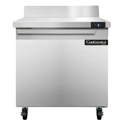 Unleash gastronomic brilliance with the Continental Refrigerator SWF32NBS Freezer Counter. This work top freezer is designed to meet the demands of a busy commercial restaurant. With a spacious 9.0 cu ft capacity, it provides ample storage space for all your frozen ingredients. The stainless steel top with a 5-1/2"H backsplash ensures durability and easy cleaning, while the field rehingeable door allows for convenient access. The electronic control with a digital display and hi-low alarm ensures precise temperature management, keeping your food at optimal freshness. The rear mounted self-contained refrigeration system and R290 Hydrocarbon refrigerant guarantee efficient cooling performance. Made in the USA, this freezer counter is cETLus and NSF certified, ensuring its quality and safety. Upgrade your kitchen with the Continental Refrigerator SWF32NBS and experience the perfect blend of functionality and reliability.