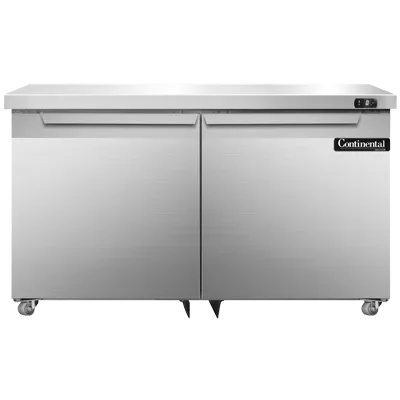 Upgrade your restaurant kitchen with the Continental Refrigerator SWF48N-U Undercounter Freezer. This two-section freezer has a spacious 48"W design and a generous 13.4 cu ft capacity, providing ample storage space for your frozen ingredients and products. The field rehingeable doors allow for easy customization to suit your kitchen layout. With its stainless steel front, top, and end panels, as well as an aluminum interior, this freezer is not only durable but also easy to clean and maintain. The front breathing design and rear-mounted self-contained refrigeration ensure efficient cooling performance. The electronic control with a digital display allows for precise temperature management, while the hi-low alarm alerts you to any temperature fluctuations. Made in the USA and certified by cETLus and NSF, this Continental Refrigerator Undercounter Freezer is a reliable and high-quality addition to any commercial restaurant.