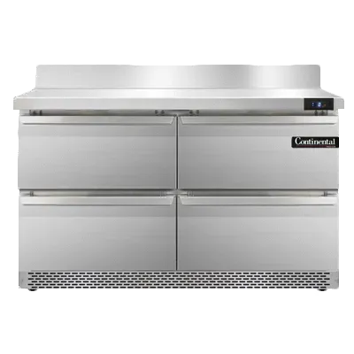 Elevate your dining experience with the Continental Refrigerator SWF48NBS-FB-D Freezer Counter. This work top freezer is designed to meet the demands of a commercial restaurant, offering a spacious 48"W size and a generous 13.4 cu ft capacity. With its two-section design and four drawers, this freezer provides ample storage space for your ingredients and prepared dishes. Each drawer can accommodate either a 12 x 18 x 6 pan or a combination of a 1/2 x 6 pan and a 1/3 x 6 pan, giving you flexibility in organizing your items. The stainless steel top with a 5-1/2"H backsplash ensures durability and easy cleaning, while the stainless steel front and end panels add a sleek and professional look to your kitchen. The electronic control with a digital display allows for precise temperature management, and the hi-low alarm ensures that your food stays at the optimal temperature. With its rear mounted self-contained refrigeration and R290 Hydrocarbon refrigerant, this freezer is energy efficient and environmentally friendly. The Continental Refrigerator SWF48NBS-FB-D Freezer Counter is cETLus and NSF certified, guaranteeing its quality and safety. Made in the USA, this freezer is a reliable and authentic choice for any commercial restaurant.