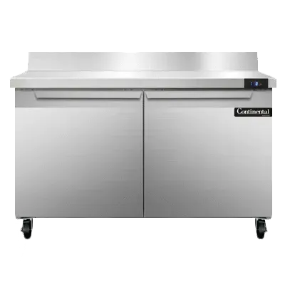 Empower your kitchen staff with the Continental Refrigerator SWF48NBS Freezer Counter. This work top freezer is designed to meet the demands of a busy commercial restaurant. With a spacious 48"W and a 13.4 cu ft capacity, it provides ample storage space for all your frozen ingredients. The stainless steel top with a 5-1/2"H backsplash ensures durability and easy cleaning, while the two-section design allows for efficient organization of your frozen goods. The field rehingeable doors offer flexibility in installation, and the electronic control with a digital display allows for precise temperature management. Made in the USA, this freezer counter is cETLus and NSF certified, guaranteeing its quality and safety. Upgrade your kitchen with the Continental Refrigerator SWF48NBS and experience enhanced efficiency and productivity.