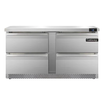 Streamline your restaurant cooking operations with the Continental Refrigerator SWF60N-FB-D Freezer Counter. This two-section work top freezer is designed to optimize your kitchen space while providing ample storage for your ingredients. With a 17.0 cu ft capacity and four drawers, this freezer counter can accommodate one 12 x 20 x 6 pan per drawer (supplied by others), allowing you to easily organize and access your ingredients. The stainless steel flat top and front panels not only provide durability but also give your kitchen a sleek and professional look. The electronic control with a digital display and hi-low alarm ensures precise temperature control and alerts you if there are any fluctuations. The rear-mounted self-contained refrigeration system with R290 Hydrocarbon refrigerant and 1/2 HP compressor ensures efficient cooling while being environmentally friendly. With its cETLus and NSF certifications, this freezer counter is guaranteed to meet the highest standards of quality and safety. Upgrade your restaurant kitchen with the Continental Refrigerator SWF60N-FB-D Freezer Counter and experience enhanced efficiency and organization.