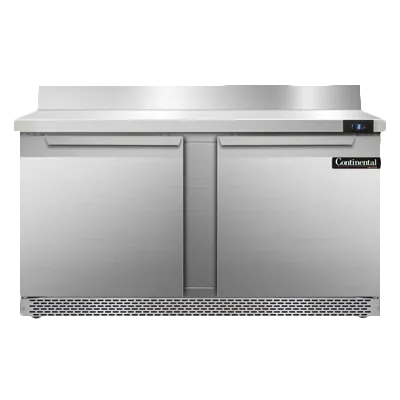 Revolutionize your cooking setup with the Continental Refrigerator SWF60NBS-FB Freezer Counter. This work top freezer is designed to meet the demands of a busy commercial restaurant kitchen. With a spacious 17.0 cu ft capacity and a two-section layout, you'll have plenty of room to store all your frozen ingredients and prepared dishes. The stainless steel top with a 5-1/2"H backsplash not only provides a durable and easy-to-clean surface but also adds a sleek and professional look to your kitchen. The two field rehingeable doors allow for easy access and flexibility in placement. The electronic control with a digital display and hi-low alarm ensures precise temperature control and alerts you if there are any fluctuations. The rear-mounted self-contained refrigeration system, powered by a 1/2 HP motor, ensures efficient cooling while the R290 Hydrocarbon refrigerant is environmentally friendly. With its cETLus and NSF certifications, you can trust that this freezer counter is made to the highest standards of quality and safety. Upgrade your kitchen with the Continental Refrigerator SWF60NBS-FB Freezer Counter and experience the convenience and reliability it brings to your restaurant operations.