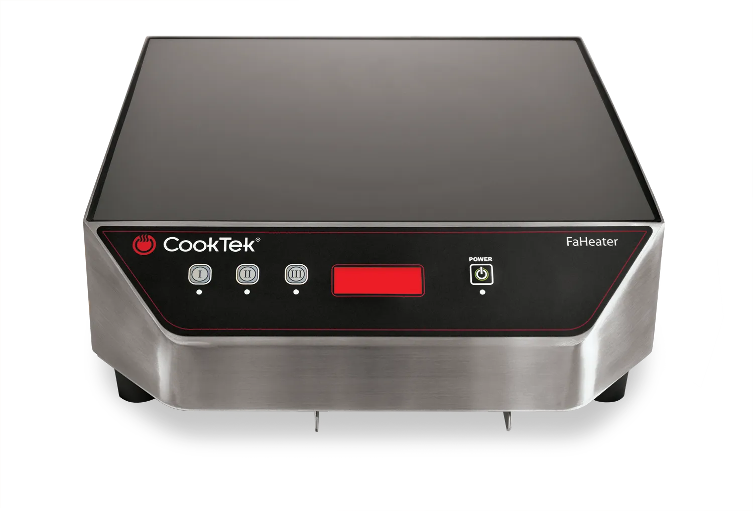 The CookTek FaHeater Induction Skillet Warmer heats cast iron skillets to sizzling hot in just seconds. It eliminates dependence on dangerous, inconsistent, and energy-inefficient methods.