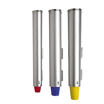 The ADJ-NW-81 surface or stand mounted pull-type (gravity-feed) cup dispenser model is designed to accommodate paper, plastic or foam cups with rim diameters ranging from 3 1/4" - 3 7/8". Stainless steel construction ensures long term product durability. Dispensers are shipped with two sets of stainless steel mounting brackets and can be mounted to a wall or surface. Countertop stands are also available. All models are NSF listed.