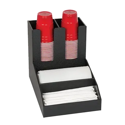 CLCO Series countertop units feature durable polystyrene construction. These units can be used to organize cups, lids, condiment and straws or stir sticks. The maximum acceptable cup or lid diameter is 4-1/4".