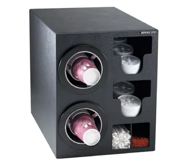 CTC-C Series Countertop Combination Cup Dispensing Cabinets feature ADJ-2 stainless steel cup dispensers and include built-in storage for lids and straws. Cabinets dispense a variety of 8 oz. to 44 oz. paper, plastic or foam cups with rim diameters ranging in size from 3" – 4 5/8". Straw compartment accommodates standard and jumbo length straws. Dispensers feature matching high gloss black ring bezels and a quick-release mounting bracket.