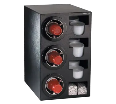 CTC-C Series Countertop Combination Cup Dispensing Cabinets feature ADJ-2 stainless steel cup dispensers and include built-in storage for lids and straws. Cabinets dispense a variety of 8 oz. to 44 oz. paper, plastic or foam cups with rim diameters ranging in size from 3" – 4 5/8". Straw compartment accommodates standard and jumbo length straws. Dispensers feature matching high gloss black ring bezels and a quick-release mounting bracket.