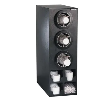 CTC-M Series Countertop Combination Cup Dispensing Cabinets feature ADJ-2 stainless steel cup dispensers and include built-in storage for lids and straws. Cabinets dispense a variety of 8 oz. to 44 oz. paper, plastic or foam cups with rim diameters ranging in size from 3" – 4 5/8". Straw compartment accommodates standard and jumbo length straws. Dispensers feature matching high gloss black ring bezels and a quick-release mounting bracket.