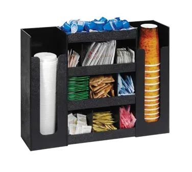 The DLCO-5BT multi-purpose organizer offers an easy way to organize cups, lids and packeted condiments. This six section organizer provides has a compact footprint for maximizing space. Features durable polystyrene construction.