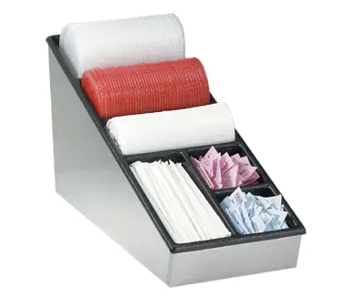 The NLS-1 features stainless steel welded construction and an easy to clean ABS plastic top. This narrow model is great for countertop applications. Ideal for merchandising single-serve coffee, tea and hot chocolate packets or simply organizing lids, straws, stir sticks and condiments.