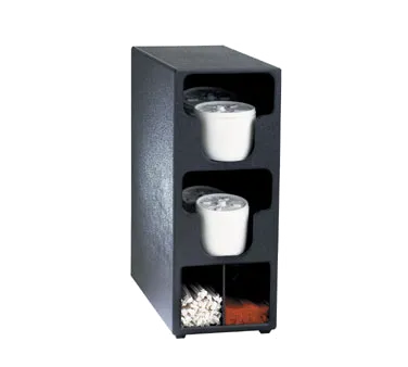 TLO Series countertop lid and straw organizers feature durable polystyrene construction. Units include angled lid compartments and a divided section for standard and jumbo length straw or condiments. Available with two, three or four lid sections these cabinets occupy only 6 1/2" x 14" of countertop space. Maximum acceptable lid diameter is 5 1/2".