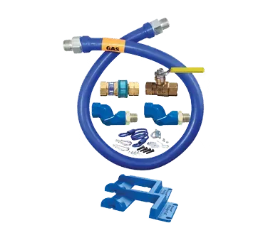 Experience excellence with exceptional safe appliance positioning with the Dormont Manufacturing Gas Connector Hose Kit. Designed specifically for commercial restaurant use, this kit ensures the safe and efficient connection of gas appliances. The kit includes a 48" long, 1" inside diameter Dormont Blue Hose, covered with a stainless steel braid and coated with blue antimicrobial PVC for added durability and hygiene. The kit also includes a SnapFast QD for easy installation, two Swivel MAX connectors for flexibility, a full port valve for precise control, and a pair of Safety Set with hardware mounting options for secure positioning. With a limited lifetime warranty, this kit provides peace of mind and reliability. Trust Dormont Manufacturing, a trusted vendor in the industry, and equip your commercial restaurant with the Dormont Manufacturing Gas Connector Hose Kit for safe and efficient appliance connections.