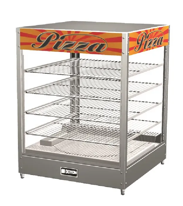 Master the art of excellence effortlessly with the Doyon-Nuvu DRP4S Display Case. This countertop food warmer and display case is designed to meet the needs of commercial restaurants. With its four shelf interior rack, it has a capacity to hold four 18" diameter pizzas, ensuring you can showcase a variety of delicious options to your customers. The tempered glass front, sides, and doors provide a clear view of the mouthwatering treats inside, enticing hungry patrons. The adjustable heat control allows you to maintain the perfect temperature, while the stainless steel interior and exterior ensure durability and easy cleaning. The inside water pan helps to maintain humidity, keeping your food fresh and appetizing. Whether you're running a pizzeria, bakery, or deli, the Doyon-Nuvu DRP4S Display Case is the perfect addition to your commercial kitchen.