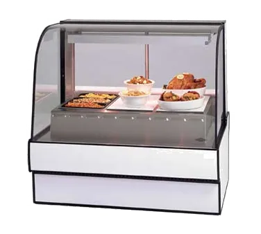 Discover the art of presentation with ease using the Federal Industries CG5948HD Display Case. This floor model heated deli case is designed to enhance the visual appeal of your culinary creations in a commercial restaurant setting. With its curved glass and tempered glass ends, this case provides a clear view of your delicious offerings from all angles. The three independently controlled stainless steel heating wells, each with a calrod heating element, ensure that your food stays at the perfect temperature. The top-mounted full-length infrared heater and forced air front-glass defogger keep the glass clear and your food looking fresh. The LED top light illuminates your dishes, making them even more enticing to customers. The glass sliding rear doors with moisture vents make it easy to access and serve your food while maintaining its quality. With its sleek stainless steel deck and removable wrapping board, this display case is not only functional but also easy to clean and maintain. Choose from a variety of laminate options with black trim to match your restaurant's aesthetic. Elevate your food presentation and attract customers with the Federal Industries CG5948HD Display Case.
