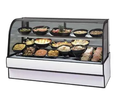 Introducing the Federal Industries CGR7748CD Display Case, the perfect solution for versatile presentation in commercial restaurants. This curved glass refrigerated deli case is designed to meet the needs of busy food establishments, offering a spacious 77"W x 35"D x 48"H display area. The self-contained refrigeration system with a condensate evaporator ensures optimal temperature control, keeping your deli items fresh and enticing. The curved thermopane tilt-front glass and LED top light create an attractive presentation, while the adjustable stainless steel mezzanine shelf provides flexibility for displaying various products. With glass sliding rear doors and a removable rear wrapping board, this case is designed for continuous lineups and easy access. The white scratch-resistant display deck and tempered glass ends add durability and style. Choose from a variety of laminate options with black trim to match your restaurant's aesthetic. Trust Federal Industries for reliable, high-quality display cases that enhance your restaurant's appeal.