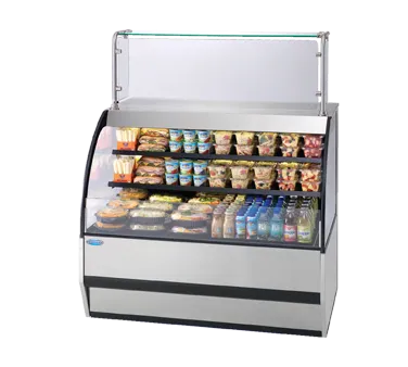 Variety unveiled in every showcase. Introducing the Federal Industries SSRVS7742 Display Case, Refrigerated, Self-Serve. This versatile service top over refrigerated deli merchandiser is perfect for commercial restaurant use. With its self-contained refrigeration and adjustable temperature control, you can ensure that your food stays fresh and at the perfect temperature. The LED horizontal top and shelf lights provide excellent visibility, while the stainless steel top service area adds a touch of elegance. The two tiers adjustable solid black metal shelves allow for flexible display options, and the tempered glass ends add durability and style. The rear-mounted appliance receptacle is perfect for plugging in additional equipment, and the choice of laminate finishes allows you to customize the look to match your restaurant's decor. With its DOE 2012 compliance and cULus, UL, UL EPH CLASSIFIED certifications, you can trust the quality and reliability of this display case. Elevate your restaurant's presentation with the Federal Industries SSRVS7742.