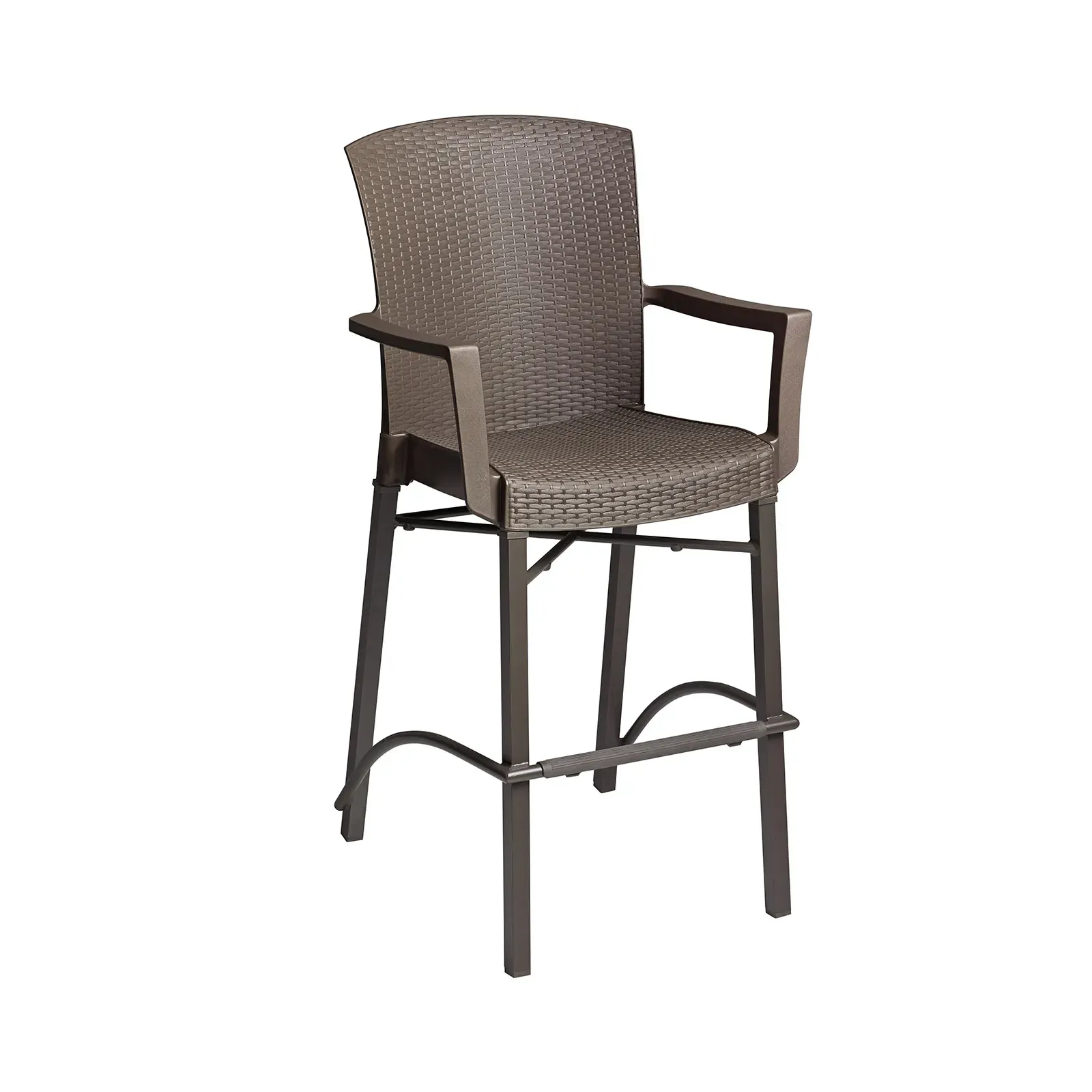 The Havana Classic Barstool is equipped with arms for added comfort, making it an inviting choice for patrons looking to relax and enjoy their meals. Its 1-1/4 square powder-coated aluminum base provides robust support and stability, while the integrated footpads protect your flooring and enhance the stool's longevity. The inclusion of a footrest further elevates the comfort level, allowing guests to sit back and unwind.