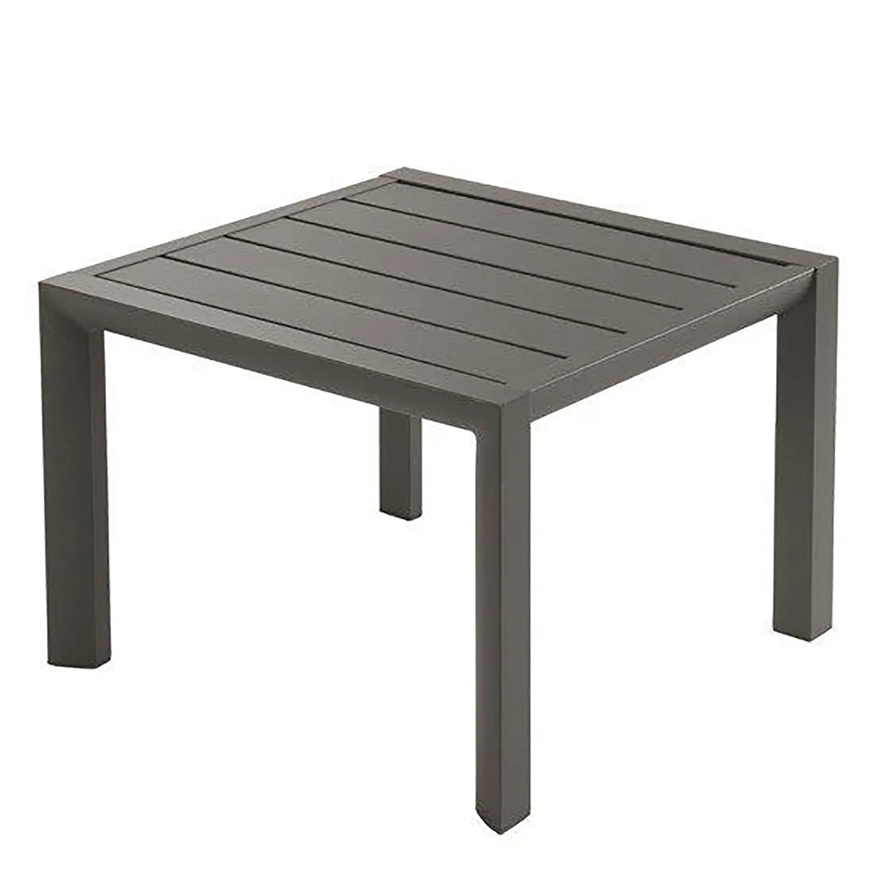 Craft inviting spaces with strategic arrangements using the Grosfillex US040288 Outdoor Table. This sleek and stylish table is perfect for commercial restaurant use, adding a touch of sophistication to any outdoor dining area. The table features a square design, measuring 20" x 20", providing ample space for guests to enjoy their meals comfortably. Made from durable aluminum with a power-coated volcanic black finish, this table is built to withstand the rigors of daily use in a busy restaurant setting. Its sturdy construction ensures stability, while the low height adds a modern and trendy vibe to your outdoor space. Whether you're creating an intimate dining area or a vibrant patio, the Grosfillex US040288 Outdoor Table is the perfect choice. Enhance your restaurant's ambiance and provide a memorable dining experience for your guests with this versatile and durable outdoor table.