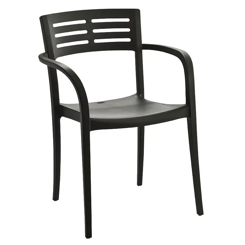 Introducing the Grosfillex US633017 Chair, Armchair, Stacking, Outdoor. Balance aesthetics and functionality outdoors with this sleek and durable armchair. Designed for commercial restaurant use, it offers the perfect combination of style and practicality. The contoured, slotted resin back provides optimal comfort, while the resin seat and frame ensure long-lasting durability. With UV resistance and recyclable materials, this chair is built to withstand the elements and maintain its sleek black finish. Whether you're creating an inviting outdoor dining area or a trendy patio space, this armchair is a must-have. Furnish your entire restaurant effortlessly with this stylish seating option. Elevate your outdoor seating experience with the Grosfillex US633017 Chair, Armchair, Stacking, Outdoor.