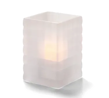 Illuminate with style and grace using the Hollowick, 1533SC, Candle Lamp / Holder. This Satin Crystal Optic Block Glass Lamp is the perfect addition to any commercial restaurant setting. With its sleek square design measuring 2-5/8"W x 3-3/4"H, this lamp exudes elegance and sophistication. It accommodates Hollowicks HD12, HD17, or HD26 disposable liquid candles, providing a warm and inviting ambiance for your guests. Crafted from high-quality glass, the satin crystal finish adds a touch of luxury to any table setting. Whether you're hosting a romantic dinner for two or a large banquet, the Hollowick, 1533SC, Candle Lamp / Holder is the perfect choice to enhance the dining experience and leave a lasting impression on your patrons.