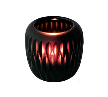 Create mood with diverse lighting using the Hollowick, 4100, Candle Lamp / Holder. This black and amber Mystic Glass Votive Lamp is the perfect addition to any commercial restaurant setting. Hand-blown with exquisite craftsmanship, this lamp exudes elegance and sophistication. Measuring 4"H x 4-1/4" dia., it accommodates Hollowicks HD15, HD12, and HD8 liquid candles, providing a warm and inviting ambiance for your guests. The black and amber color combination adds a touch of mystique and allure to any dining experience. With its sleek design and high-quality construction, this candle lamp is not only a functional lighting solution but also a stylish decor piece. Elevate your restaurant's atmosphere and create an unforgettable dining experience with the Hollowick, 4100, Candle Lamp / Holder.