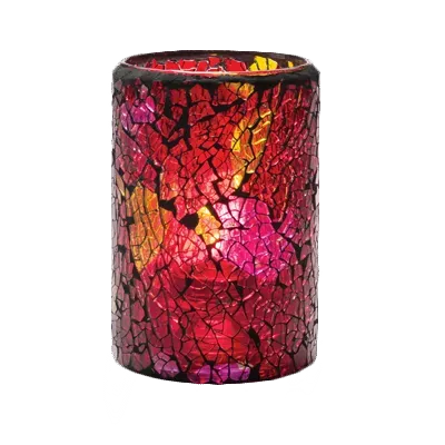 Effortless elegance in every lighting using Hollowick, 43017RG, Candle Lamp / Holder. This Red and Gold Crackle Cylinder Glass Lamp from Hollowick adds a touch of sophistication to any commercial restaurant setting. The cylinder style and vibrant red and gold colors create a warm and inviting ambiance, perfect for enhancing the dining experience. Made of high-quality glass, this lamp accommodates Hollowicks HD26, HD17, or HD12 Liquid candles, providing a reliable and long-lasting source of light. With a compact size of 3-1/8" diameter and 4-1/2" height, it fits seamlessly on tables, countertops, or bar areas. The crackle design adds a unique texture and visual interest, making it a standout piece in any restaurant decor.