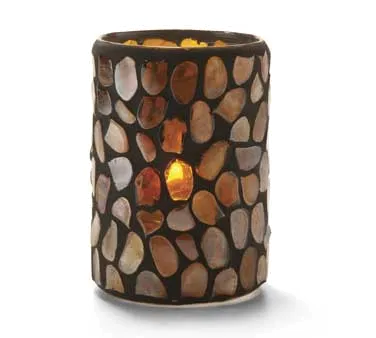 Introducing the Hollowick, 46017A, Candle Lamp / Holder, a versatile choice for creating ambient charm in any commercial restaurant setting. Crafted with an amber mosaic colored glass, this Amber Pebble Cylinder Glass Lamp adds a touch of elegance and warmth to your dining experience. The pebble glass cylinder measures 4-3/8"H x 3" dia., accommodating Hollowicks HD26, HD17, or HD12 Liquid candles. Whether you're looking to enhance the ambiance of your bar area or create an intimate dining experience, the Hollowick, 46017A, Candle Lamp / Holder is the perfect choice. Trust Hollowick, a reputable vendor in the candle lamp/holder category, to provide you with a high-quality product that will impress your guests and elevate your restaurant's aesthetic.